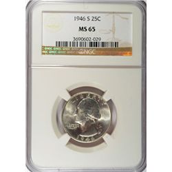 1946 S WASHINGTON QUARTER NGC MS65 GEM173 - 1946 S WASHINGTON QUARTER NGC MS65 GEM
