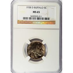 1938 D BUFFALO NICKEL NGC MS65 GEM174 - 1938 D BUFFALO NICKEL NGC MS65 GEM