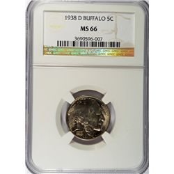 1938 D BUFFALO NICKEL NGC MS66 SUPER175 - 1938 D BUFFALO NICKEL NGC MS66 SUPER