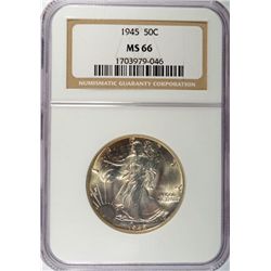 1945 WALKING LIBERTY HALF DOLLAR NGC MS66 SUPER176 - 1945 WALKING LIBERTY HALF DOLLAR NGC MS66 SUPER