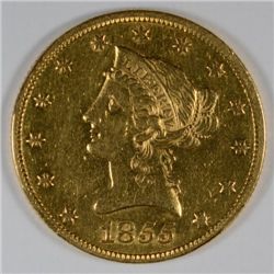 1855 $10 Liberty Gold AU+