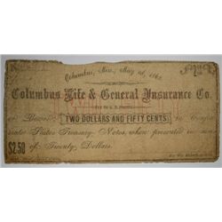 1862 $2.00 COLUMBUS LIFE & GENERAL INSURANCE MS NOTE