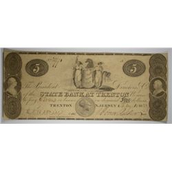 1822 $5.00 BANK OF TRENTON, NJ