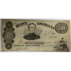 1863 $50.00 STATE OF LOUISIANA NOTE