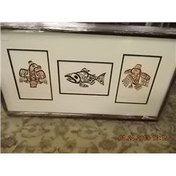 FRAMED W.COAST NATIVE ART "HAIDA EAGLE, SALMON,RAV BILL REID