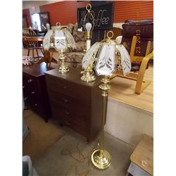 FLOOR LAMP + 2 TABLE LAMPS - 1 SHADE MISSING