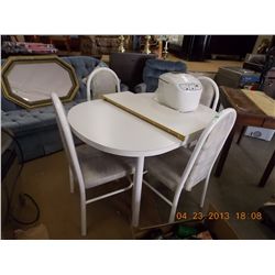 DINING TABLE - WHITE - WITH LEAF AND FOUR CHAIRS