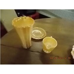 FIRE KING VASE, PLATE, CREAM SERVER - 3PC