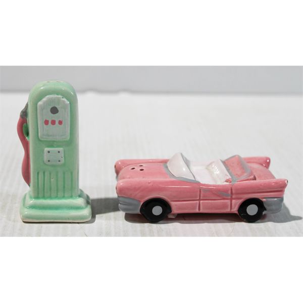 VINT. CONVERTIBLE & GAS PUMP SALT & PEPPER SHAKERS