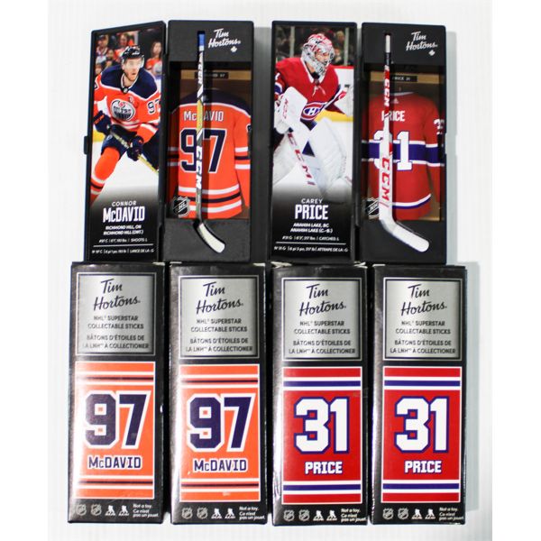 4 TIM HORTONS NHL COLLECTOR HOCKEY STICKS MCDAVID ETC