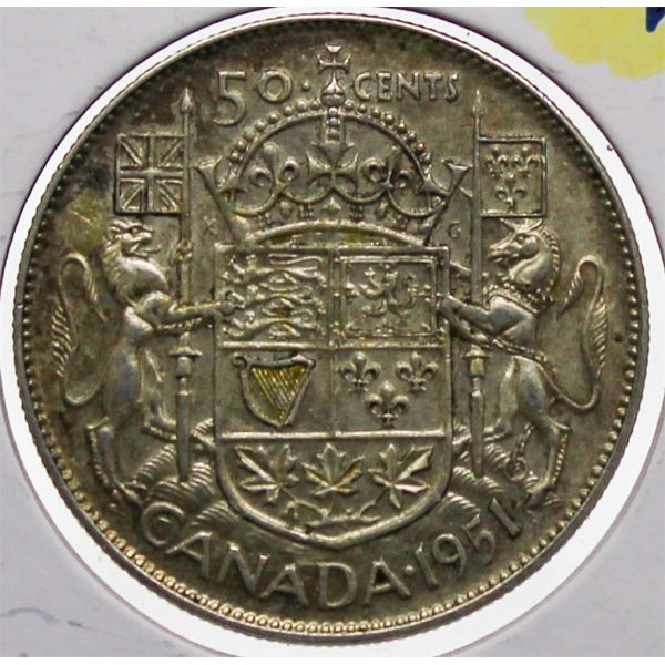 1951 CANADA KING GEORGE VI SILVER 50 CENT COIN