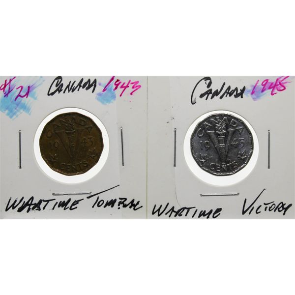 CANADA 1943 WARTIME & 1945 WARTIME VICTORY NICKELS