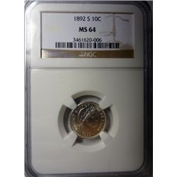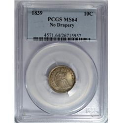 1839 No Drapery Seated Liberty Dime PCGS MS-64