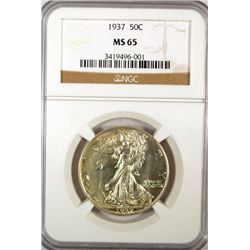 1937 WALKING LIBERTY HALF DOLLAR NGC MS 65 GEM!