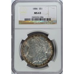 1886 MORGAN DOLLAR NGC MS 63 WHITE + COLOR
