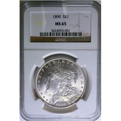 1890 MORGAN DOLLAR NGC MS65 GEM, WHITE