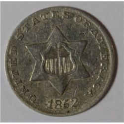 1852 THREE CENT SILVER FINE (DAMAGED)