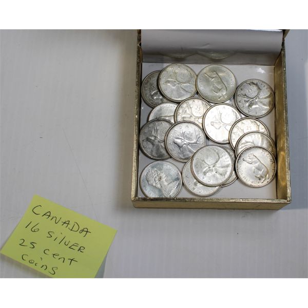 16 CANADA SILVER .25 CENT COINS