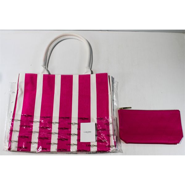 NEW LANCOME BARBIE PINK & WHITE LARGE CANVAS TOTE BAG