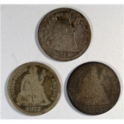 1859-72-74 arrows Seated Liberty dime  good; 49 has a dent  est $35-$40104 - 1859-72-74 arrows Seated Liberty dime good; 49 has a dent est $35-$40