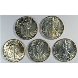 5  nice BU 1942  Walker half $    est $150-$165111 - 5 nice BU 1942 Walker half $ est $150-$165