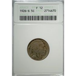 1926S  Buffalo nickel 1/2 horn ANACS 12  est $90-$100126 - 1926S Buffalo nickel 1/2 horn ANACS 12 est $90-$100