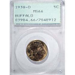 1938D  Buffalo nickel OGH "RATTLER"  PCGS66  est $70-$75128 - 1938D Buffalo nickel OGH "RATTLER" PCGS66 est $70-$75