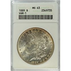 1889  Morgan $  ANACS VAM-1 MS63 GRADED RIGHT  est $60-$65135 - 1889 Morgan $ ANACS VAM-1 MS63 GRADED RIGHT est $60-$65