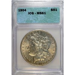 1904 MORGAN DOLLAR ICG MS61 NICE143 - 1904 MORGAN DOLLAR ICG MS61 NICE