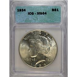 1934 PEACE DOLLAR ICG MS64 BLAST WHITE147 - 1934 PEACE DOLLAR ICG MS64 BLAST WHITE