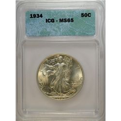 1934 WALKING LIBERTY HALF DOLLAR ICG MS65 GEM BLAST WHITE148 - 1934 WALKING LIBERTY HALF DOLLAR ICG MS65 GEM BLAST WHITE