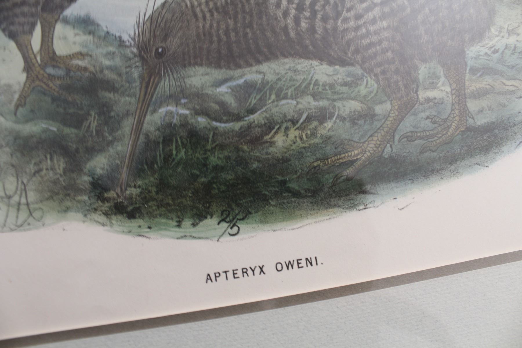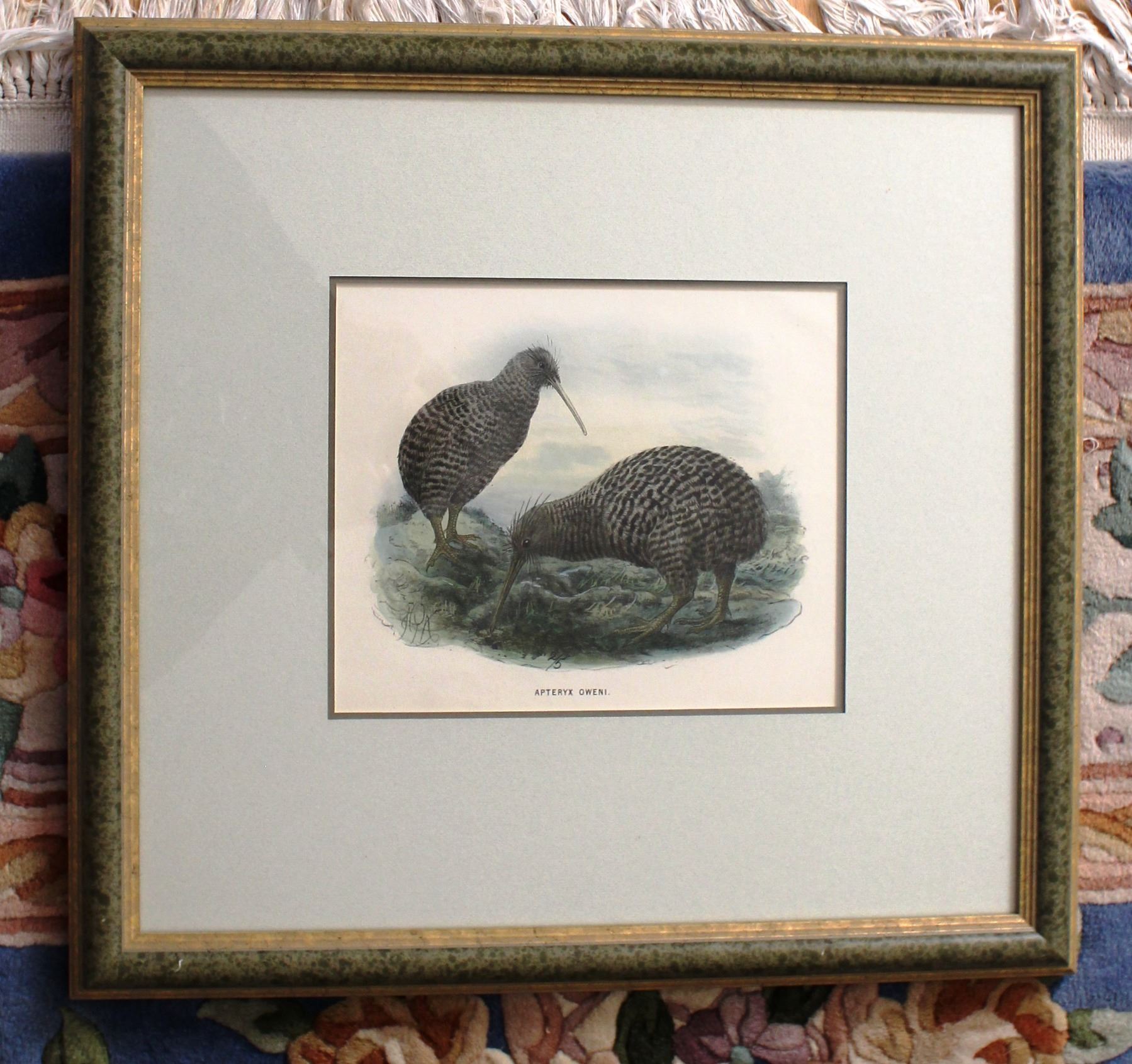 Label on back of Artwork: Original Hand Colored Lithograph, 1873 KIWIS Antique Printed Gallery, New Zealand. 20 1/2”x19/1/2”