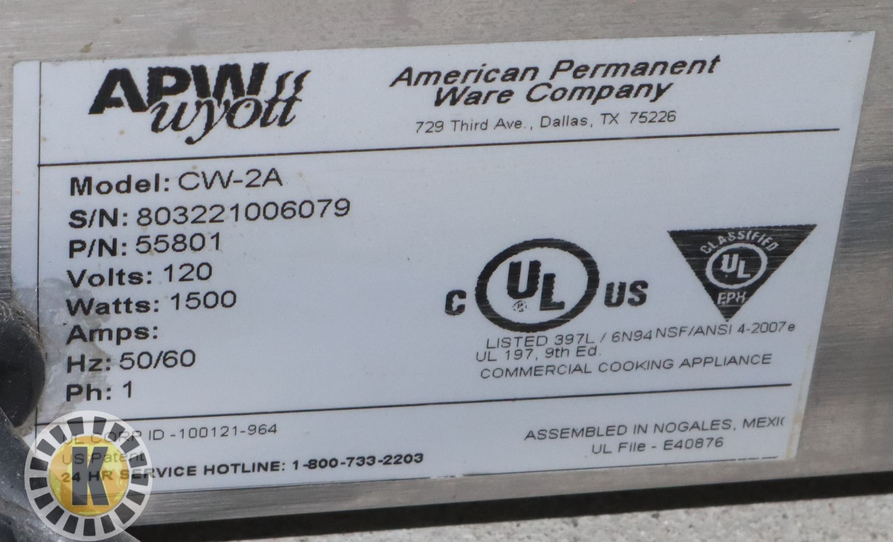 MODEL CW-2A. FOR FULL SIZE FOOD SERVICE INSERTS***ITEM LOCATED AT OFFSITE LOCATION 15MIN FROM KASTNER LETHBRIDGE OFFICE, FOR EXACT ADDRESS SEE AUCTION DESCRIPTION, WE WILL WORK WITH ANY CARRIER YOU ARRANGE FOR ANYONE UNABLE TO PICK UP THEIR ITEMS IN PERSON