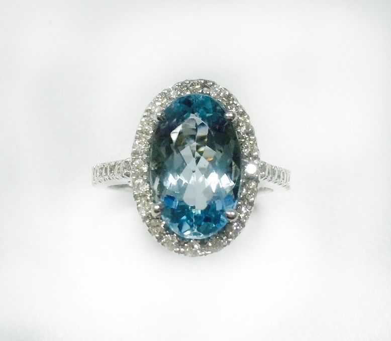 AQUAMARINE 3.51CT, 14K W/G RING 4.09GRAM / DIMOND RD 0.50CT
