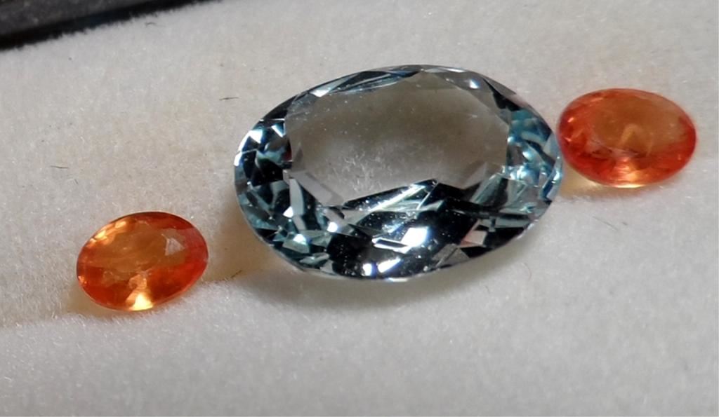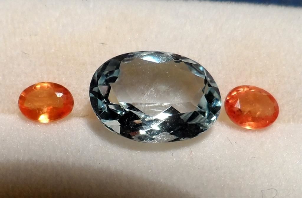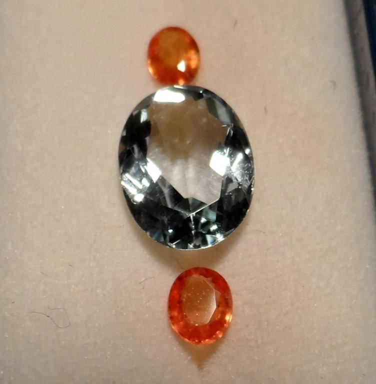 AQUAMARINE & SAPPHIRE ENSEMBLE, NATURAL, 1.80 CARATS ORANGE SAPPHIRE GEMSTONE AS SHOWN SEE PHOTO FOR MORE DETAILS.