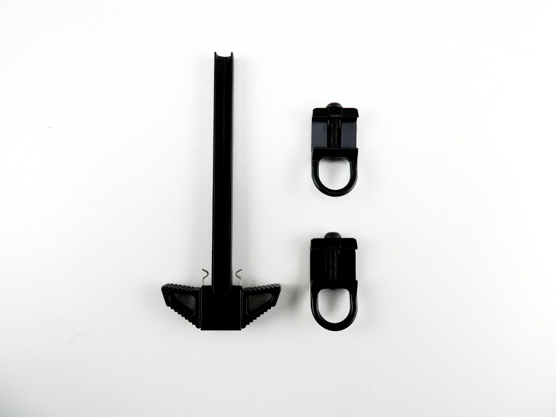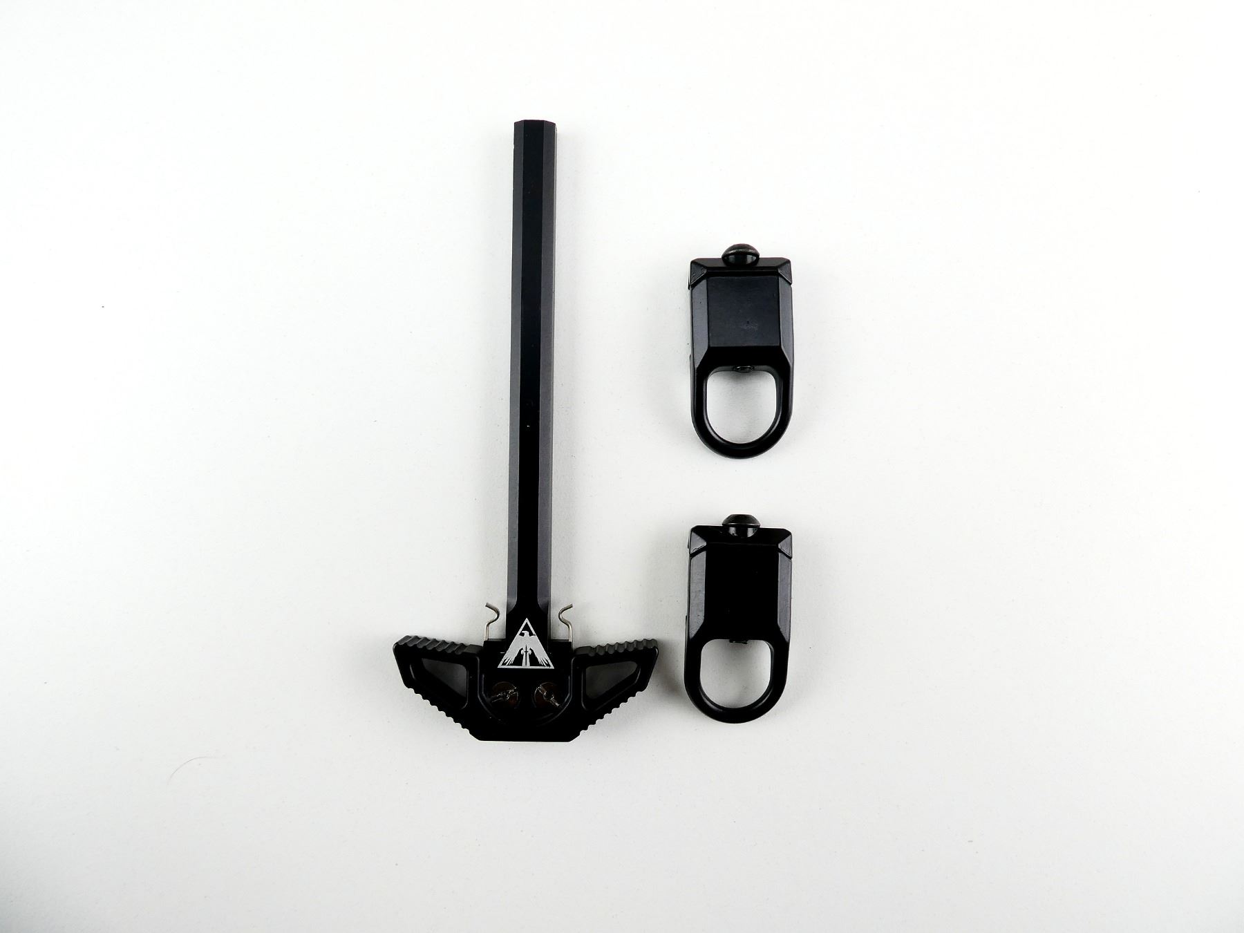 LOT INCLUDES; (2) SINGLE POINT SLING MOUNTS & (1) LTAC TALON CHARGING HANDLE, FRONT IS CUT-OFF, FOR PARTS ONLY. MAY REQUIRE FITTING. SEE PHOTOS.