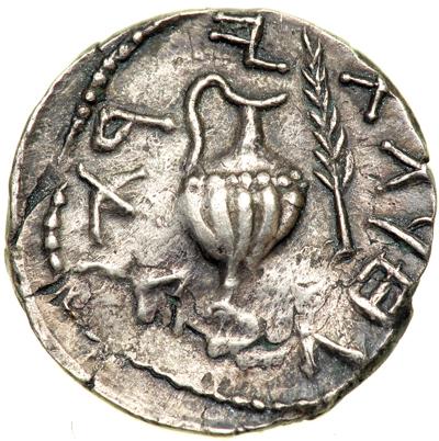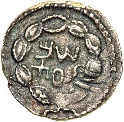 AR Denar (2.9 g) attributed to year 3 (134/135 CE). Inscription within wreath. Reverse: One-handled jug right with palm branch to right. AJC 66b; Mild 77 [only 1 example cited]; H. 717. Understrike visible on reverse. Very Fine toned.