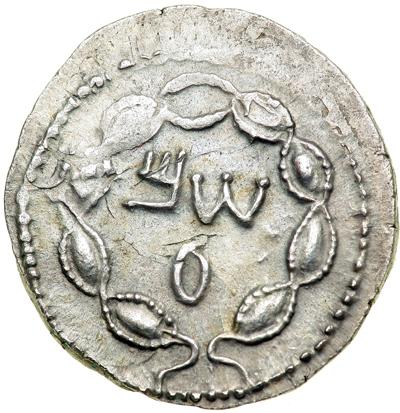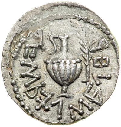 AR Denar (3.3 g) dated year 2 (133/4 CE). Inscription within wreath. Reverse: One-handled jug right with palm branch to right. AJC 33; Mild 33 [52 examples cited]; H. 692. About Extremely Fine.