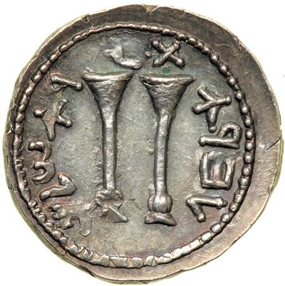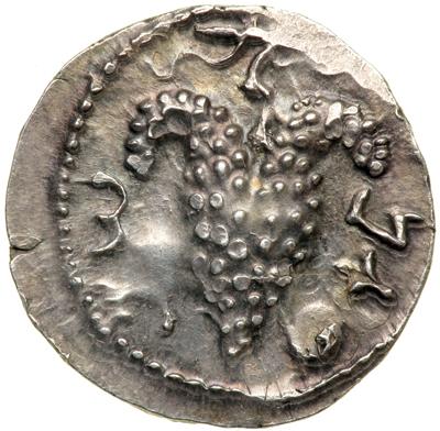 AR Denar (3.5 g) attributed to year 3 (134/5 CE). Triform bunch of grapes. Reverse: Two upright trumpets. AJC 60; Mild 187 [11 examples cited]; H. 730. Extremely Fine.