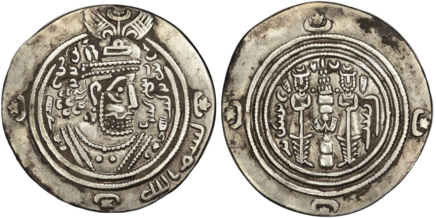 ARAB SASANIAN: 'Abd Allah Ibn 'Amir Ibn Kurayz (661-664), silver dirham (2.74g), BYSh (Bishapur) mint, AH 44. Patronymic cited. A-6. Very fine.