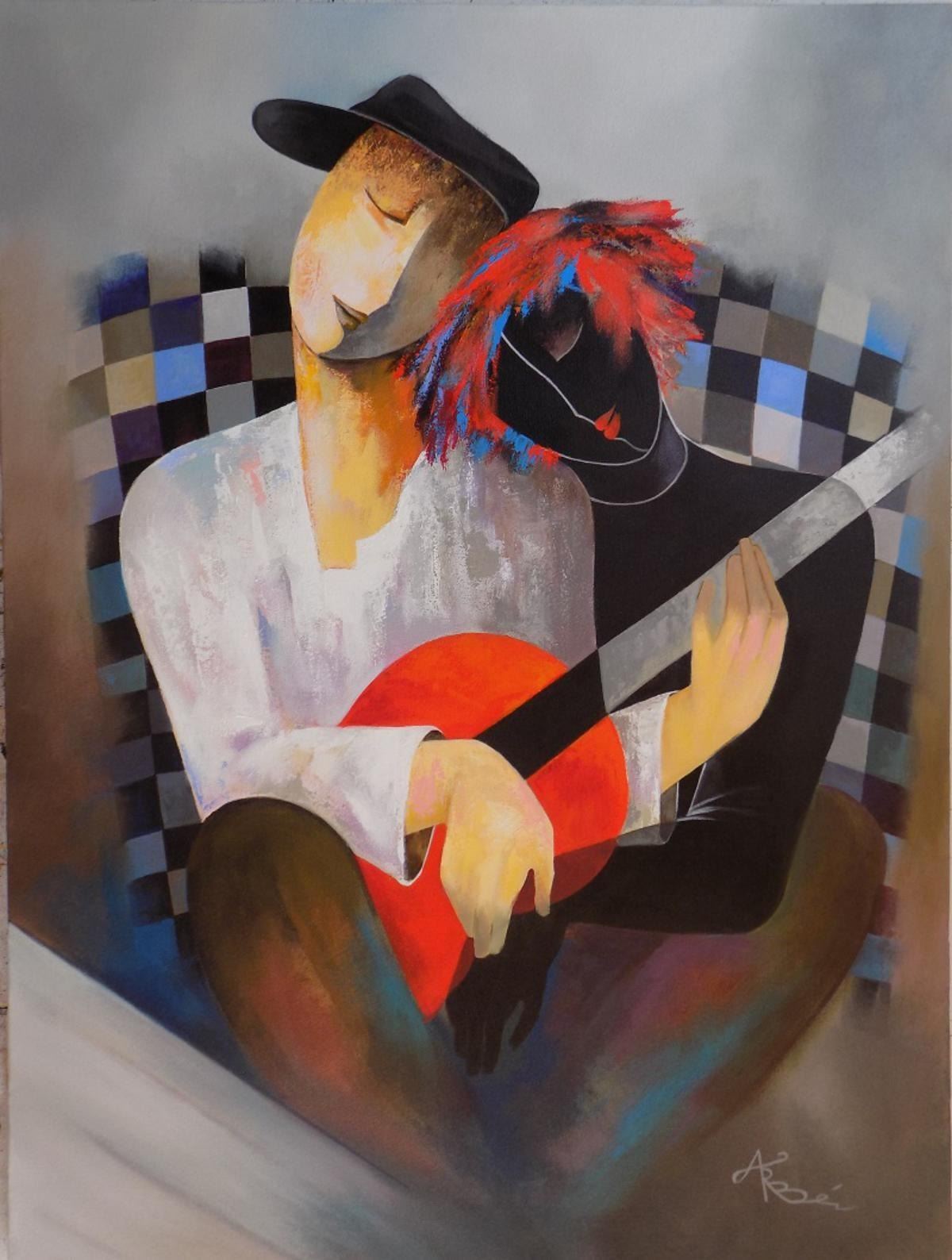 Artist: ARBE. Medium: Acrylic and Mixed Media on Canvas. Title: In Harmony. Size (Unframed): 40" x 30". Certificate of Authenticity: Is included. Reference# 12210.