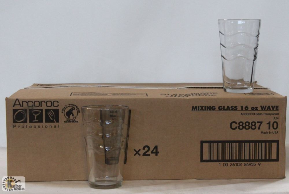 ARC14 - NEW, 1 CASE OF 24 ARC CARDINAL C8887 COOLER/MIXING GLASS, 16 OZ. FULLY TEMPERED **ALL ITEMS MUST BE REMOVED BY 5PM MONDAY, SEPTEMBER 12TH, 2022. ALL REMAINING ITEMS WILL BE SUBJECT TO A $6.00 PER DAY STORAGE CHARGE. ANY ITEMS REMAINING AFTER MONDAY, SEPTEMBER 26TH, 2022 WILL BE CONSIDERED FORFEITED. NO REFUNDS WILL BE ISSUED FOR FORFEITED ITEMS.** TO SCHEDULE A PICK UP APPOINTMENT CLICK HERE