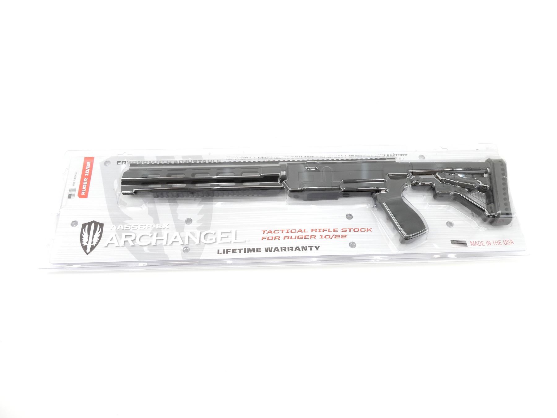 (1) BLACK POLYMER CONSTRUCTION, MARKED "ARCHANGEL 5.56", FITS RUGER 10/22, OVERALL LENGTH APPROX. 30.25", APPEARS NEW OLD STOCK, IN ORIGINAL PACKAGING. MAY REQUIRE FITTING. SEE PHOTOS.
