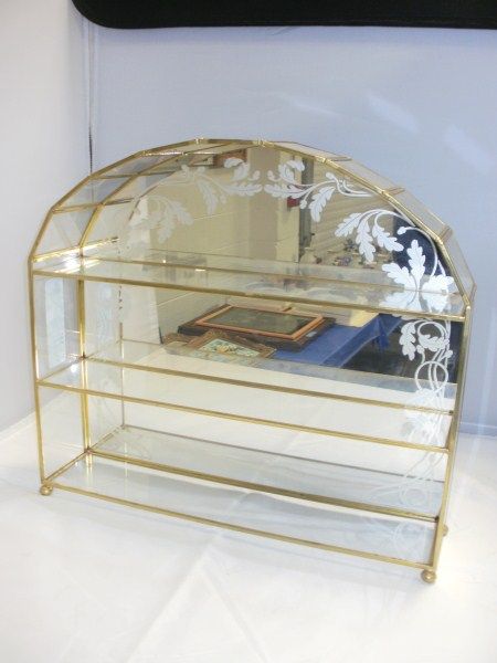 ARCHED TOP DISPLAY CASE W/ETCHED MIRROR BACK