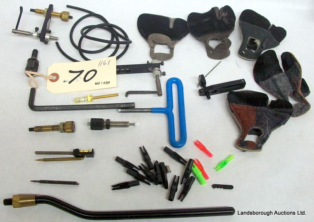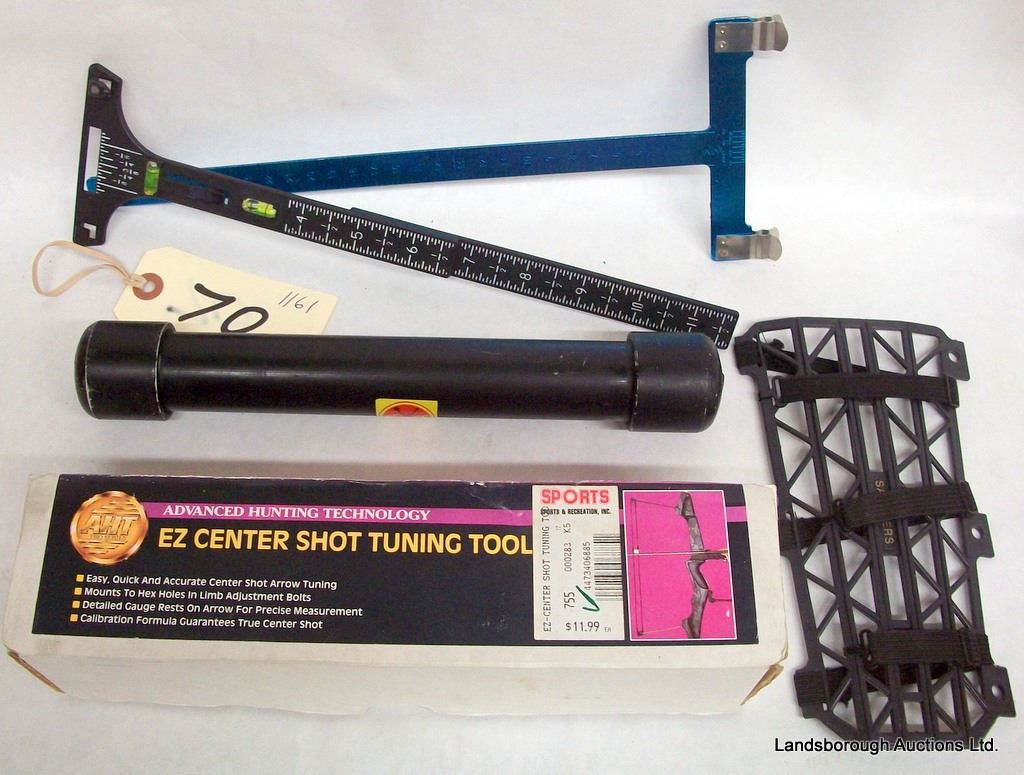 TUNING TOOL, BOOKS, ARM GUARD, BOW SQUARE, HOME MADE BALANCE, PULL TABS, MISCELLANEOUS BOW PARTS.
