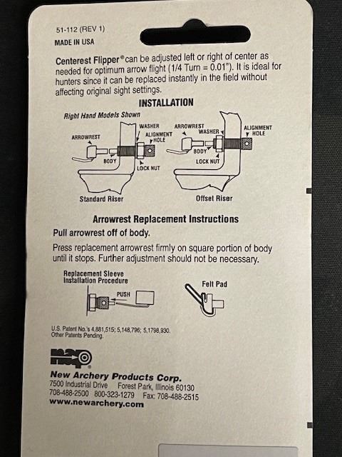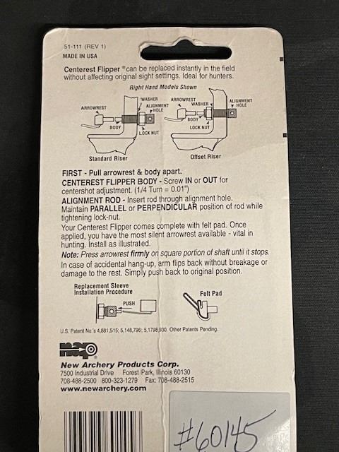 1 pkg - NAP 60145 CENTEREST LH FLIPPER ARROWREST