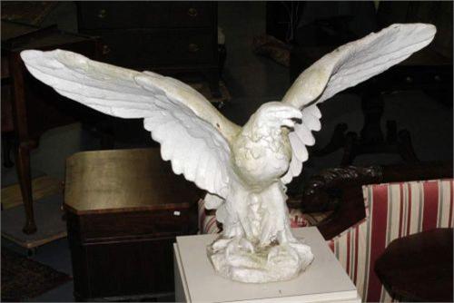 ARCHITECTURAL EAGLE, reinforced cast cement, 38" wingspan, late 19th/early 20th century