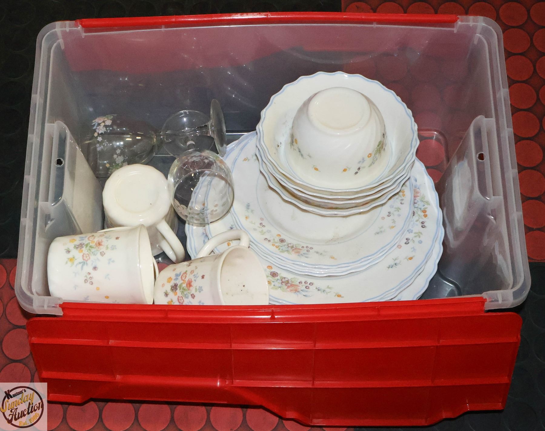 MATCHING PATTERN CRYSTAL WINE GLASS IN LIDDED STORAGE TOTE **ALL PROCEEDS FROM THIS LOT WILL GO TO -IN THE WOODS ANIMAL RESCUE** **ALL ITEMS MUST BE REMOVED BY 5PM SATURDAY, JUNE 28th 2025. ALL REMAINING ITEMS WILL BE SUBJECT TO A $6.00 PER DAY STORAGE CHARGE. ANY ITEMS REMAINING AFTER MONDAY, JULY 14TH 2025 WILL BE CONSIDERED FORFEITED. NO REFUNDS WILL BE ISSUED FOR FORFEITED ITEMS. TO SCHEDULE A PICK UP APPOINTMENT CLICK HERE