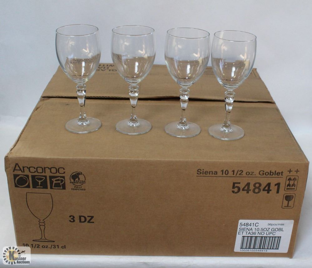 ARC23 - NEW, 1 CASE OF 36 ARCOROC 54841 SIENNA 10.5OZ GOBLET, FULLY TEMPERED. **ALL ITEMS MUST BE REMOVED BY 5PM MONDAY, FEBRUARY 6TH, 2023. ALL REMAINING ITEMS WILL BE SUBJECT TO A $6.00 PER DAY STORAGE CHARGE. ANY ITEMS REMAINING AFTER MONDAY, FEBRUARY 20TH, 2023 WILL BE CONSIDERED FORFEITED. NO REFUNDS WILL BE ISSUED FOR FORFEITED ITEMS.** TO SCHEDULE A PICK UP APPOINTMENT CLICK HERE