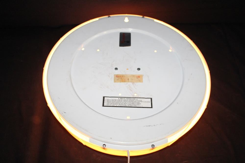 16 1/2 DIA. LIGHTS AND CLOCK RUNS. 2 SLIGHT CRACKS IN THE FACE. APPROXIMATE SHIPPING COST $45 TO $65. THIS ITEM IS GUARANTEED TO BE OLD AND ORIGINAL.